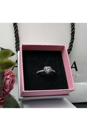 Gümüş renkli pembe taşlı kalpli yüzük portakal Çiçeği yağı hediyeli