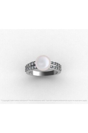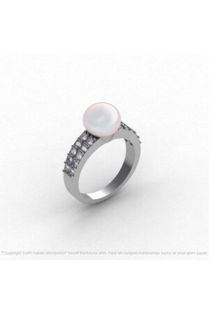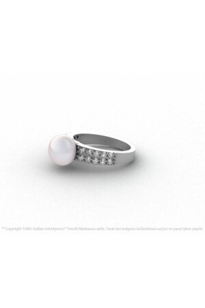 Beyaz Gerçek Inci Yüzük Kalp Şeklinde Pırlantalarla Süslenmiş Yüzüğün Gövdesi Rodyum(08)