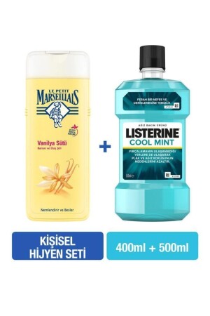 MNZ- Le Petit Marseillais فانيلا حليب 400 مل + لسترين بارد النعناع 500 مل مجموعة نظافة.