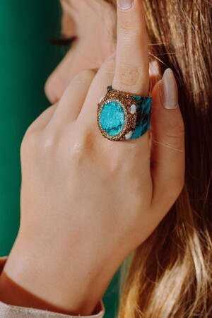 خاتم التصميم من فخامة MNZ مع تفاصيل الجلد ، و لؤلؤ في النمط الباروكي و حجر الماكورين مزين على الخصر