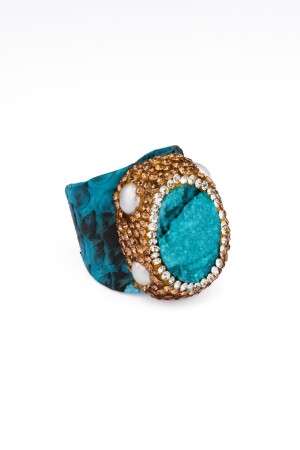 منز-زرق الحجر الباروكية الطراز زيركون الحجر مزين خلية تصميم فاخر مع تفاصيل الجلد. المنتج مصنوعة يدويا. 316L المواد