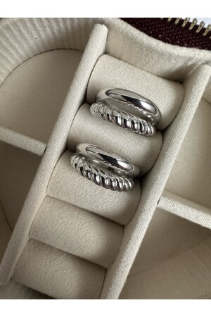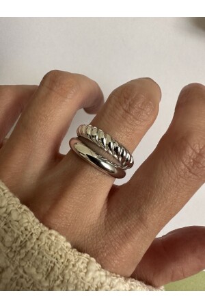 خاتم نسائية مُقلبة من صفين ملون من الفضة من MNZ