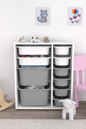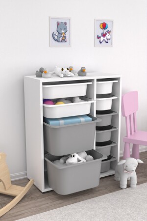 خزانة لعبة متعددة الأغراض MNZ مع 10 صحونات أبيض رمادي 2d2k6u PRA004000