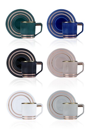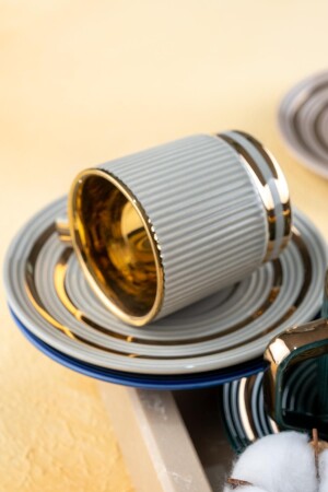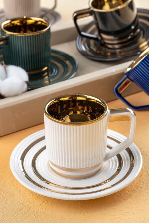 MNZ- Julia مجموعة من 6 كوبات قهوة مجموعة محتويات 6 كوبات - 90 مل 6 كوبات وسوسات مواد لاستخدام طويل الأمد من البورتسلين الذهب التفاصيل