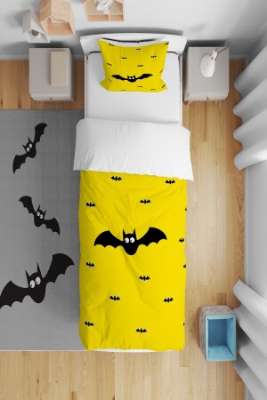 خلفية MNZ-صفراء، الخفاش الأسود باتمان موتيف غرفة الأطفال الغطاء الغطاء القماش مجموعة 1CNT-119