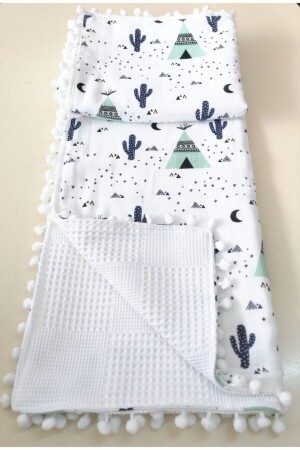 مقاسات MNZ-110x100، المسلين على جانب واحد والبيك على الجانب الآخر مع بوم-بوم على الحافة، 100٪ القطن، ذات النسجة التنفسية،