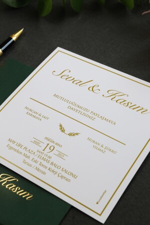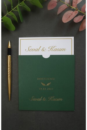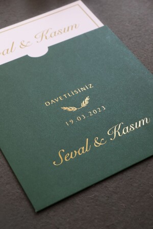دعوة زفاف من طراز MNZ - ذهبية مع ملف أخضر (50 برنامج)