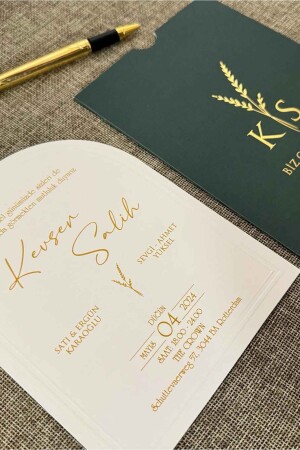 دعوة زفاف من طراز MNZ - ذهبية مع ملف أخضر (50 برنامج)