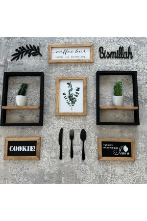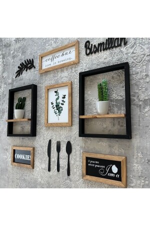مجموعة من الشاي والقهوة ذات موضوع 6 قطع من الجدار الخشبي