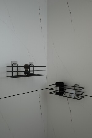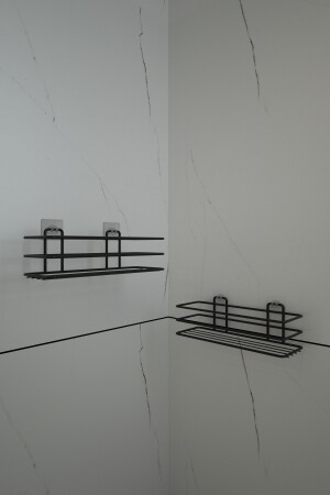 رف الحمام مع الغرصات الملصقة طلاء حمام أسود مقطة 2 قطع المنتج يتم طلاء منتجنا خصيصا ضد الصدأ. إنه منتج قياسي. إنه منتج