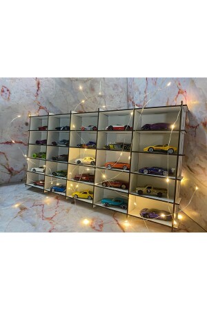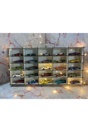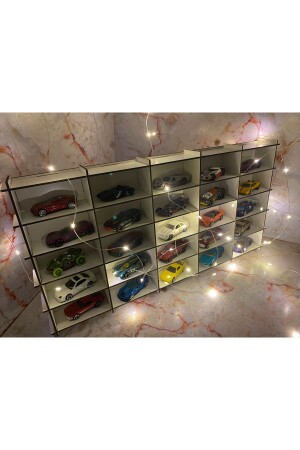 Eğimli Dekoratif Duvar Araba Rafı ( 154 Araçlık-beyaz )
