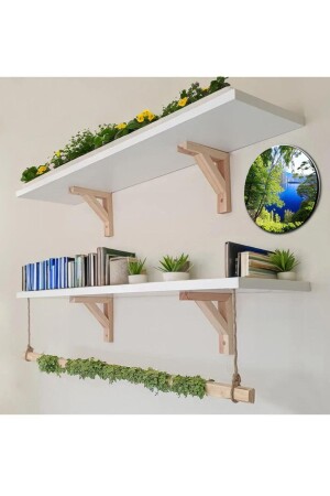 رف جدار أزياء بيضاء من الخشب من الخشب معلقة بالحبل عمق 20 سم 2 قطعة 00003
