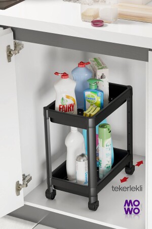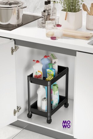 رف منظم من مستوى MNZ-2 مع عجلات سوداء - خزانة حمام - مخزن المطبخ و تحت الغسالة - حامل للمطهر