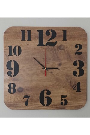 تم إنتاجه من طبقات مزدوجة من 3 مم من MDF. يبلغ حجمها 40 × 40 سم وعمق إجمالي 6 مم. يتم استخدام ساعات معدنية ويدق دقيقة ، آلية تدفق