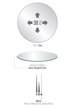 ساعة الجدار من الزجاج من MNZ 1060 30 × 30 سم P12876S6880