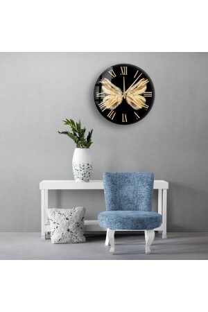 Altın Renk Plexiglass Aynalı 3d Kabartmalı El Boyaması Piyano Model Duvar Saati- Tablo 3 Parça