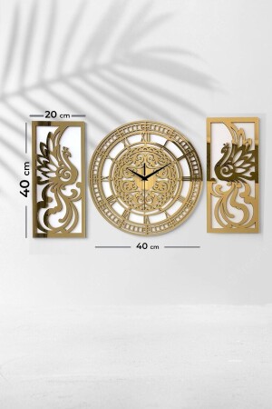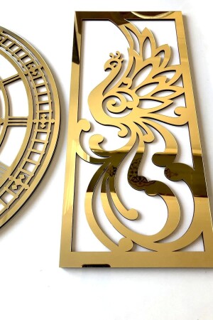 Altın Renk Plexiglass Aynalı 3d Kabartmalı El Boyaması Piyano Model Duvar Saati- Tablo 3 Parça