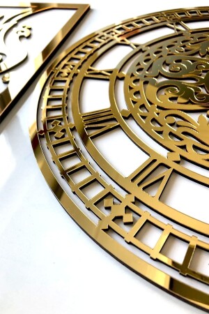 مقاس الساعة من 40x40cm - الطاولات الجانبية 20x40cm. مصنوعة من ساعة من 1مم مرآة ذهبية على 5-4مم مDF. ميكانزم الساعة