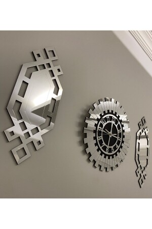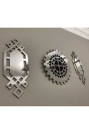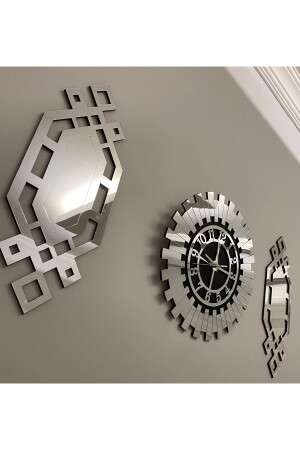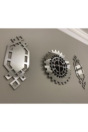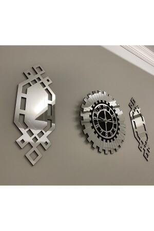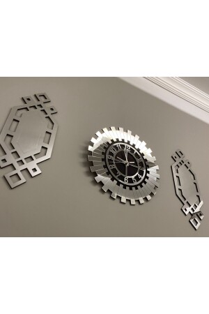 م.ن.ز-الديكورية - الحديثة - التركي رقمية ديكورات المنزل والمكتب أزياء الفضة (الفضة) 3 قطع ديكورات الجدار ساعة مجموعة. ساعة شم
