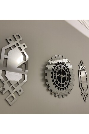 ساعة جدارية مزخرفة من 3 40 سم فضية ساعة جدارية تركية حديثة 18 × 51 سم لوحة Baklava
