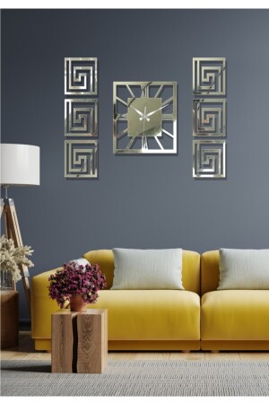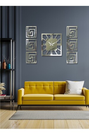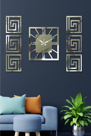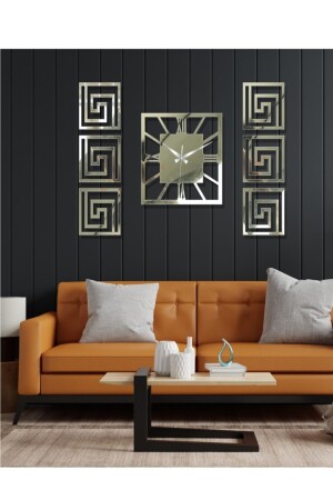 Altın Renk Plexiglass Aynalı 3d Kabartmalı El Boyaması Piyano Model Duvar Saati- Tablo 3 Parça