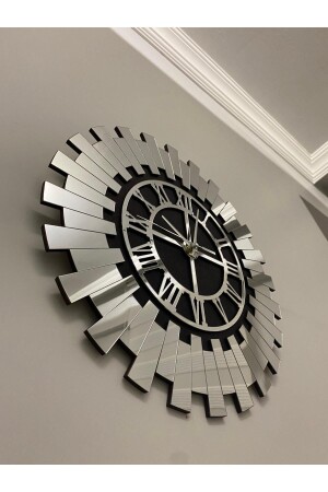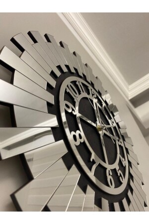 MNZ-3 قطعة ساعة الجدار الفضة المرآة 3D البيانو نموذج شجرة النخيل التفاصيل الرقم اللاتيني