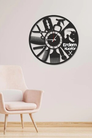 تم تصميم ساعة الحجرة المزخرفة من الخشب مع تصميم خاص للشعر للعمل لمحلات الشعر ومستودعات الشعر. لها أبعاد 34 سم × 34 سم. تم إ