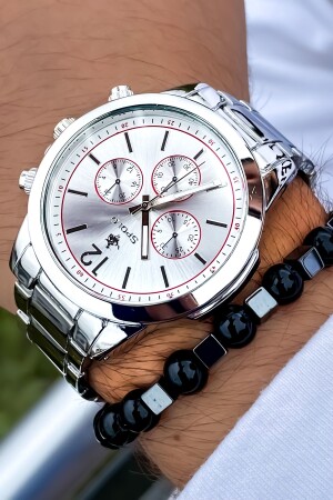 ساعة المساواة من الرجال من MNZ 3 ATM مقاومة للماء فئة الفضة الفضية الزهرة الصلب + سوار هدية. Cbk644 GNC4628