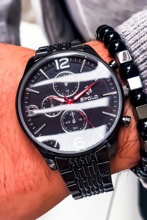 ساعة يد الرجال من حبل من الفولاذ الأسود MNZ + سوار مع هدية FAVORİPOLO030