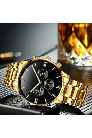 ساعة معصم معدنية من النحو التناظري لا تتصلب أو تتلوث. يمكن ضبطها لتتناسب مع كل معصم. القياس والصفحة سوداء مع رقم ذهبية.