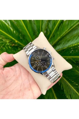 ساعه اليد للرجال من فولاذ من فولاذ من خيط فضي أسود
