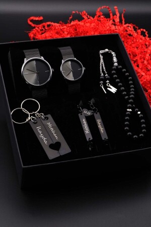 MNZ- يتم إرسال المجموعة الكاملة كما هو في الصورة - 2 ساعات + 2 سلاسل مفتاح قلب + 2 سوار + الوردية المخطوطة. يمكنك إرسال لنا التخص