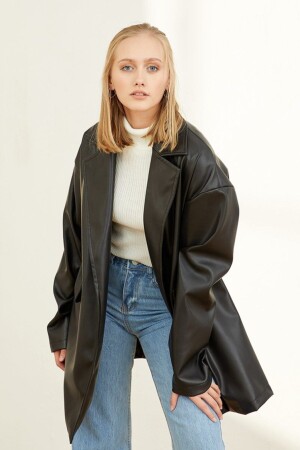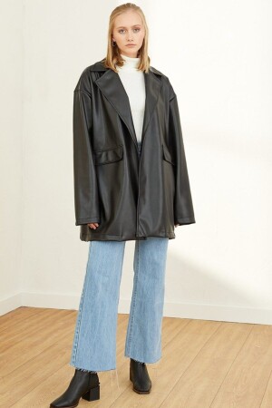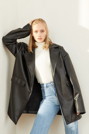 Balon Kol Siyah Deri Ceket