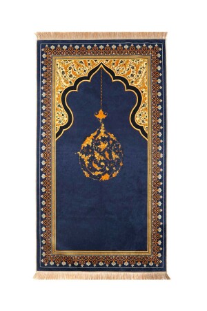 Dekoratif Dijital Baskılı Siyah Kaymaz Taban Seccade Namazlık 75 x 120