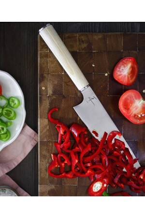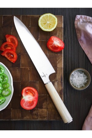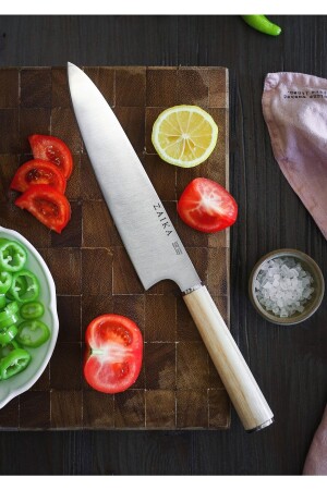 سكين الطاهي من المنشطات من الخشب من (MNZ-Gyutou) - فولاذ فولاذ من الفولاذ المقاوم للصدأ 21 سم