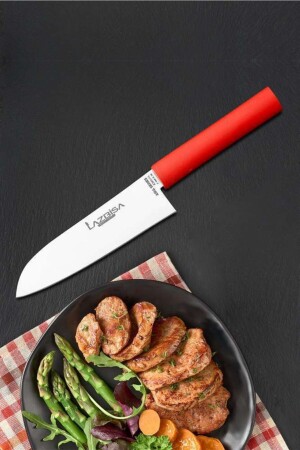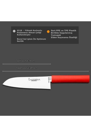 محتويات المكونات من طلاء من النفط: 1 Lazbisa Asia Santaku Knife: (طول إجمالي 29.5 سم) (طول الفولاذ 16 سم) ميزات المنتج