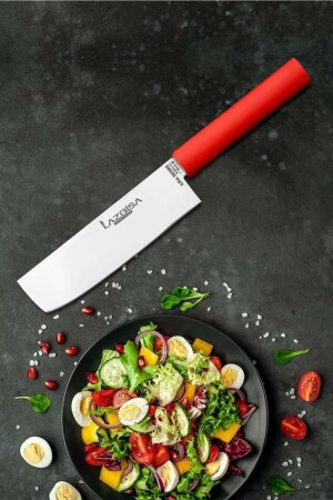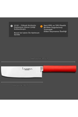 محتويات غلافات: 1 Lazbisa Asia Nakiri Knife: (طول إجمالي 29.5 سم) (طول الفولاذ 16 سم) ميزات المنتج: 4116 - عالية