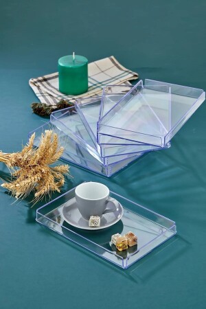 شريط عرض من 4 قطع - شريط عرض خدمة - شريط تزيين من 4 قطع - أبعاد المنتج الشفافة: 17 سم طول: 24 سم ارتفاع: 2.5 سم