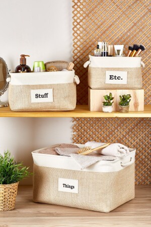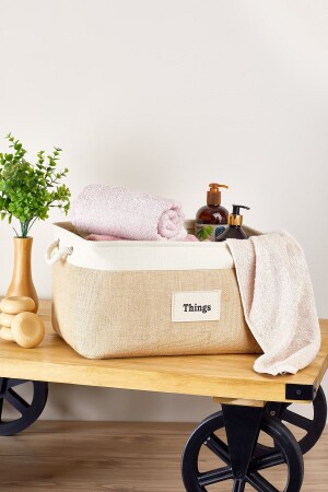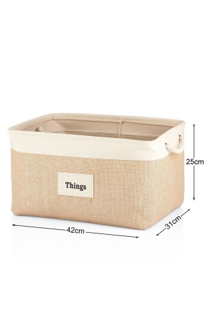 سلة جوت مستطيلة MNZ مع شريطات الكريم - أبعاد المنتج الكبيرة: 31 x 42 x 25 سم المنتج مصنوع من نسيج جوت.