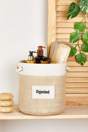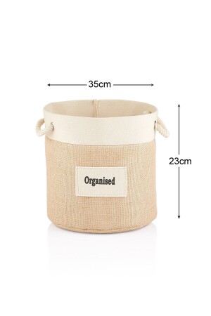 سلة جوت من أسطوانة MNZ- Cream Stripped Cylinder - متوسط حجم المنتج: 35 × 23 سم المنتج مصنوع من نسيج جوت.