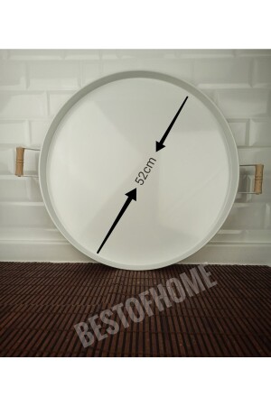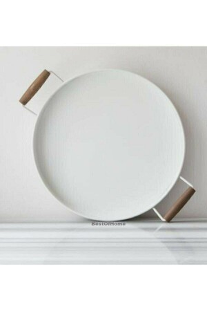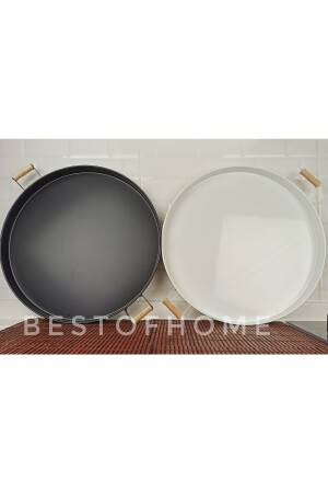 3 Lü (51- 37- 30 CM) Ahşap Kulplu Metal Tepsi Çay Tepsisi Kahve Tepsisi Sunum Tepsi Seti