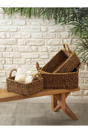 Hasır Sepet- Çok Amaçlı 3lü El Yapımı Organize Sepet
