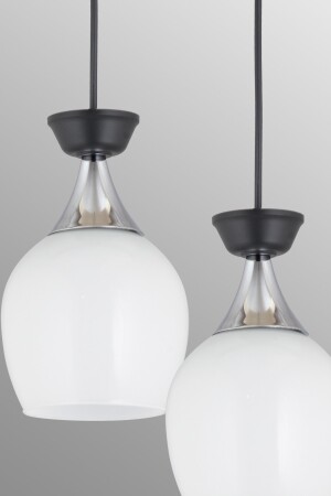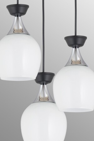 سلة مصباح MNZ-Pendant 3-piece Black Venezia Bell Jar مع زجاج أبيض وشريط كروم عصري للأسفل المواجهة للشراعية 03301071