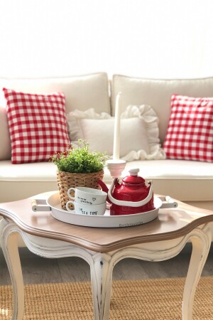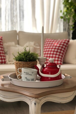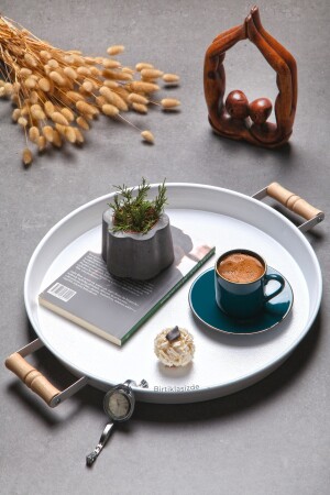 3 Lü (51- 37- 30 CM) Ahşap Kulplu Metal Tepsi Çay Tepsisi Kahve Tepsisi Sunum Tepsi Seti