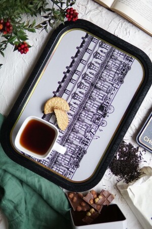 Paslanmaz Çelik Kare 6lı Aksesuarsız Çay Kahve Sunum Tepsisi