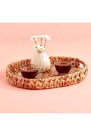 3 Lü (51- 37- 30 CM) Ahşap Kulplu Metal Tepsi Çay Tepsisi Kahve Tepsisi Sunum Tepsi Seti