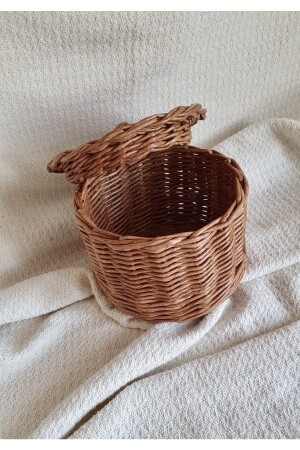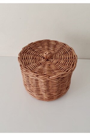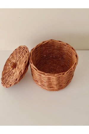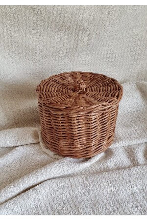 سلة من الخشب من الخشب من الخيزران المصنوعة يدويا مع الغطاء / سلة متعددة الأغراض / صندوق تخزين 17 × 17 سم HLYSEPET