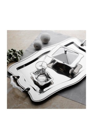 Paslanmaz Çelik Kare 6lı Aksesuarsız Çay Kahve Sunum Tepsisi