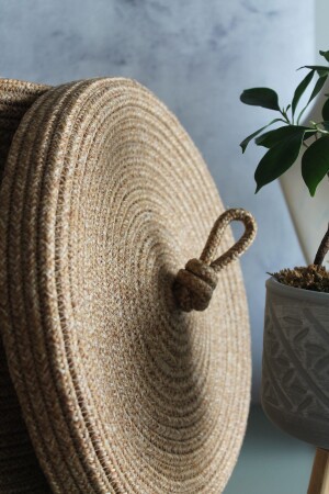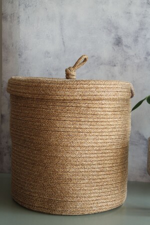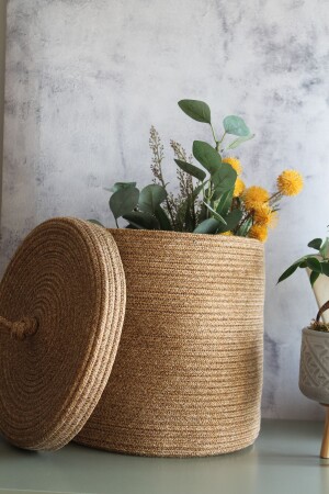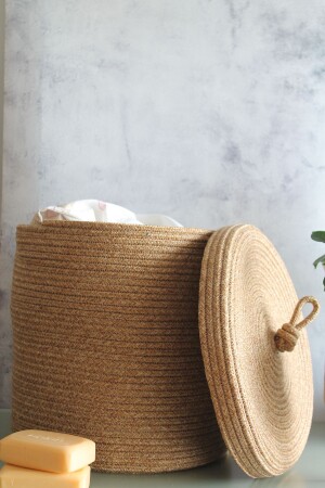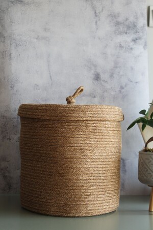 سلة ميكر من النسج اليدوي مع غطاء اليهوت - سلة حمام قذرة - سلة منظمة المطبخ وعلبة الزهور