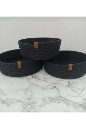 م.ن.ز-إيه يتكون من مجموعة من 3. المنتج مصنوع من حبل القطن. المنتج أسود. هو مصنوع يدوياً بالكامل. قطر السلة 20 سم. ارتفاع